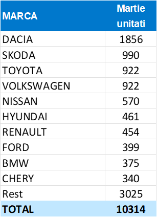 Este de menționat ca totalul pieței de autoturisme este în scădere cu -19%, în primele trei luni ale lui 2026, fată de aceeași perioadă a anului trecut.